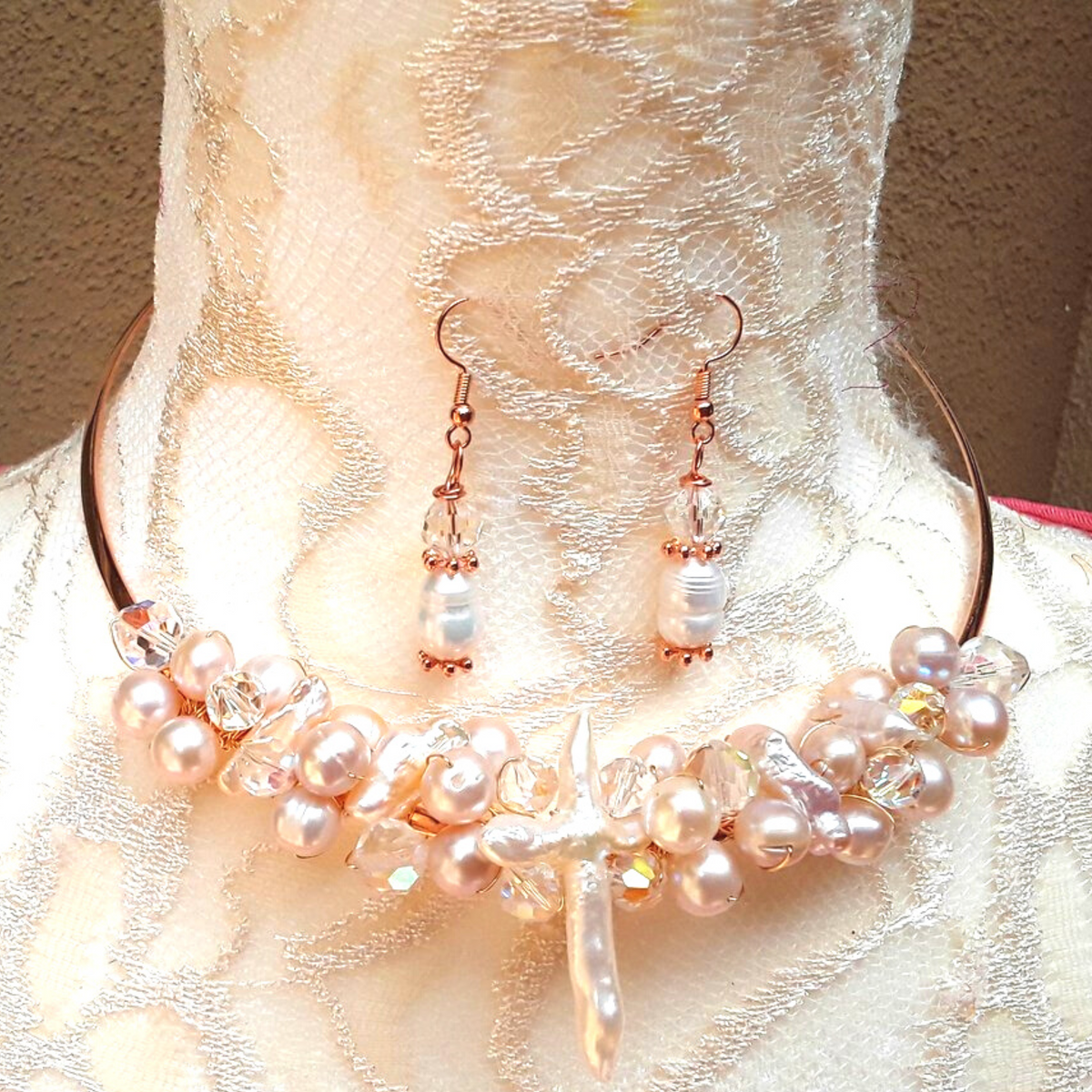 Hand Blown Clear & Bronze Glass Bubble Chunky Wire Statement Necklace - Unique Bridal Collar - Colorful Gift for Her