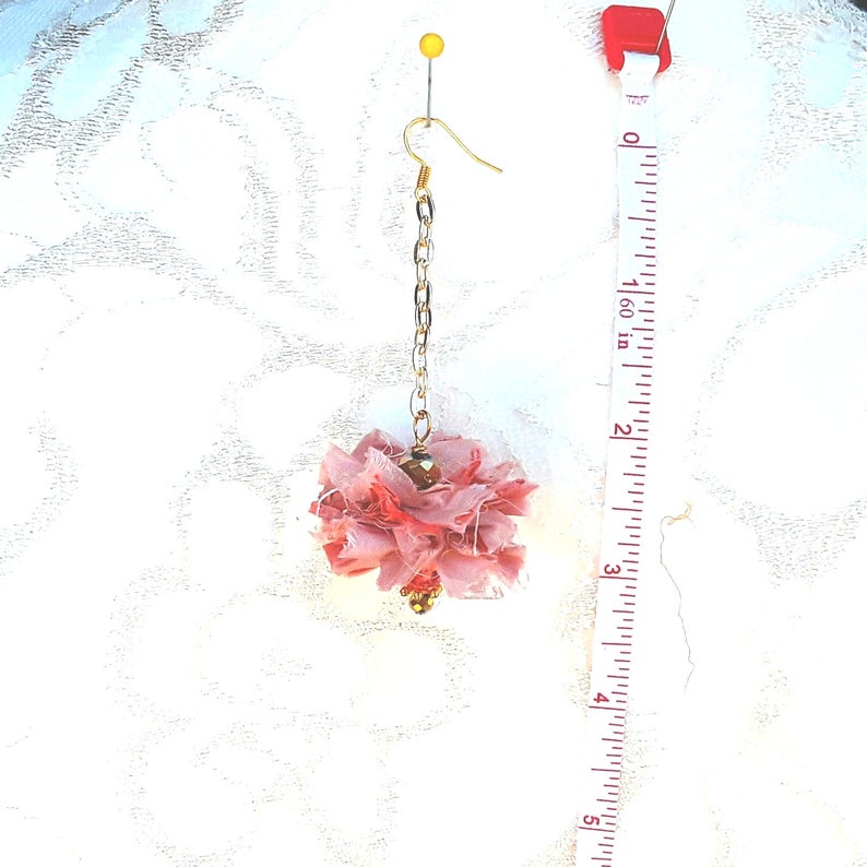 Pink Sari Flower Statement Dangles - Boho Fabric Earrings - Unique Gift for Her