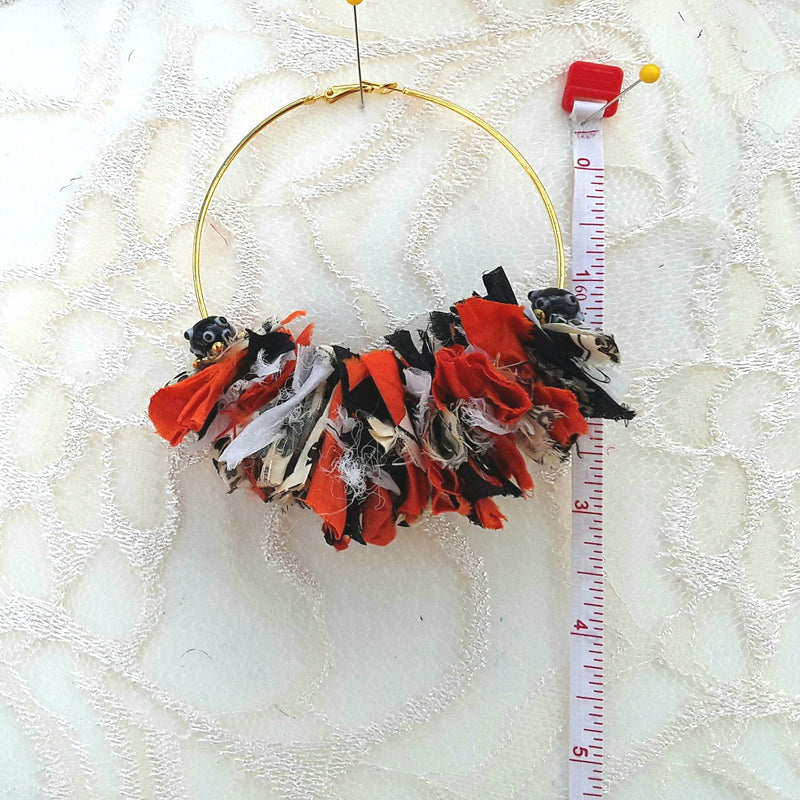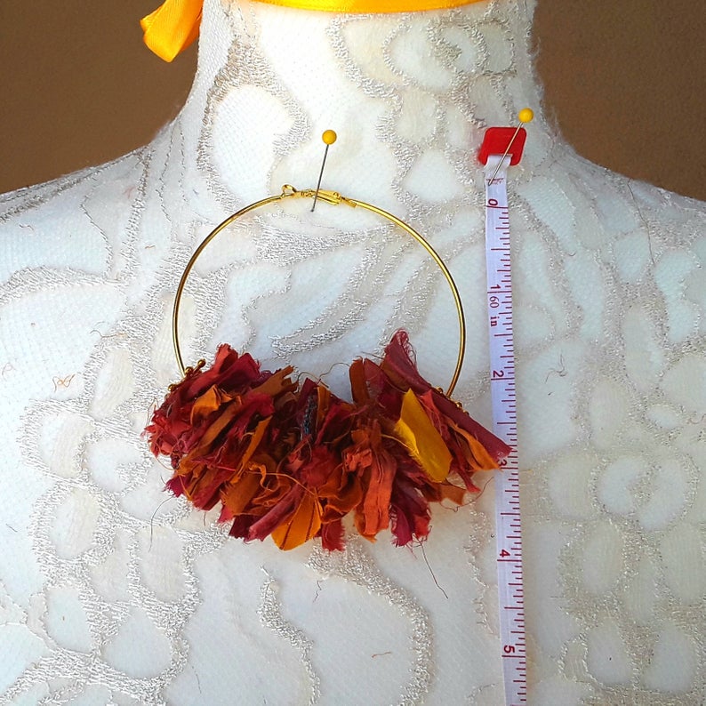 Fall Huge Hoop Gold Plated Statement Earrings - Sari Silk Boho Fabric Earrings