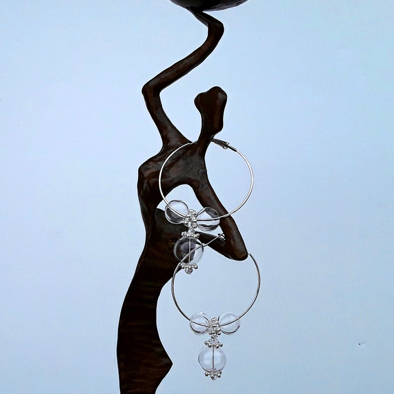 Hand Blown Glass Bubble Hoops in Gold or Silver Plated Statement Earrings - Bridesmaid Gift