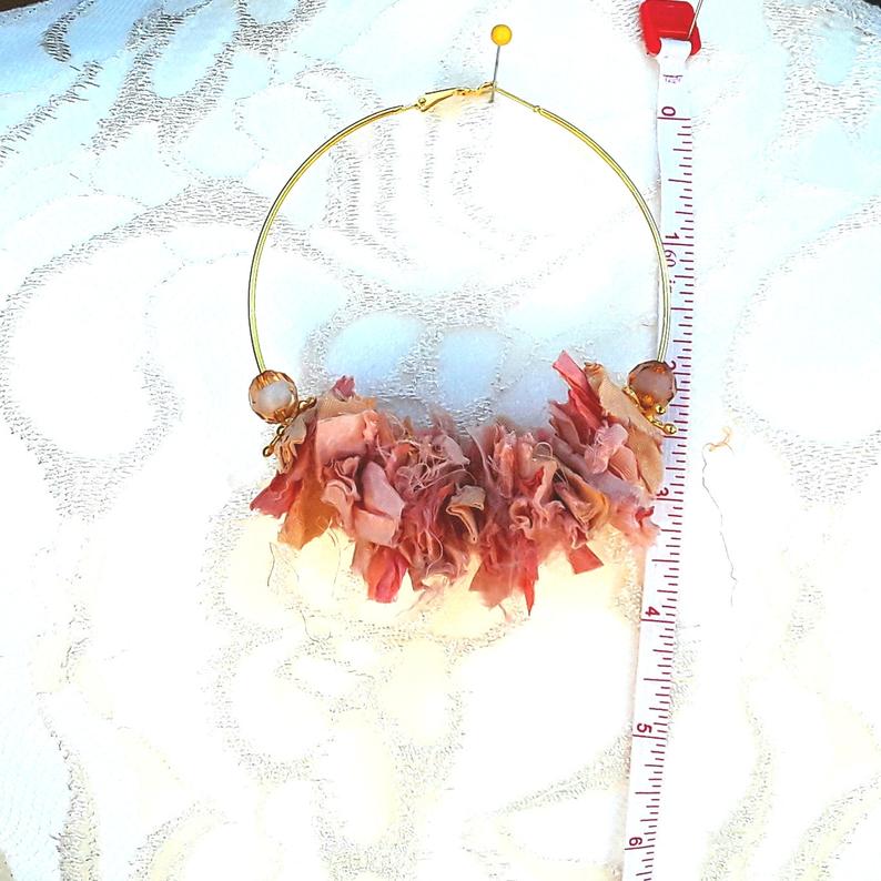 Peach Huge Hoop Gold Plated Statement Earrings - Sari Silk Boho Fabric Earrings