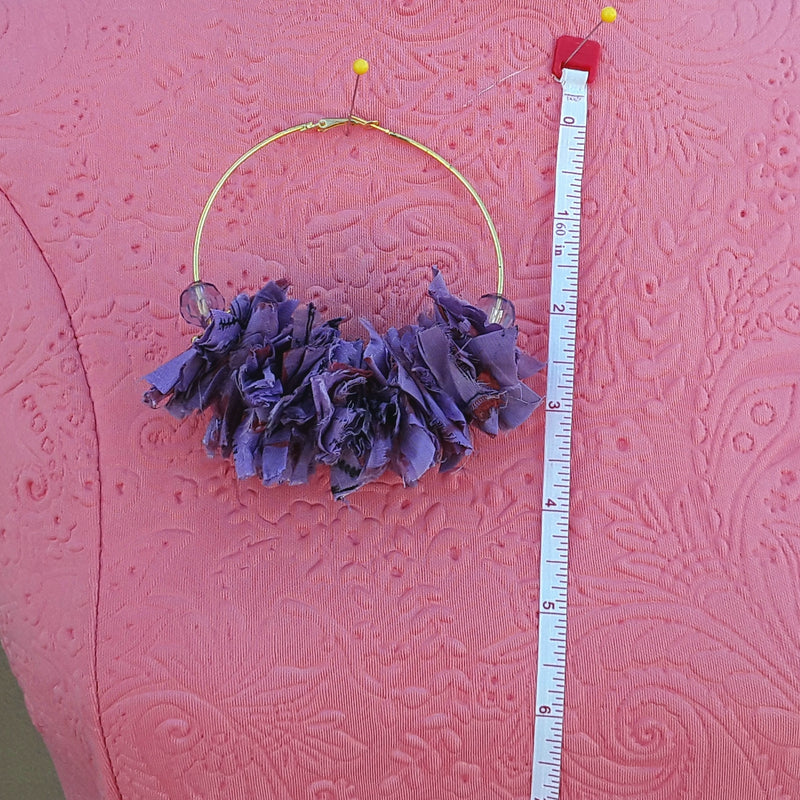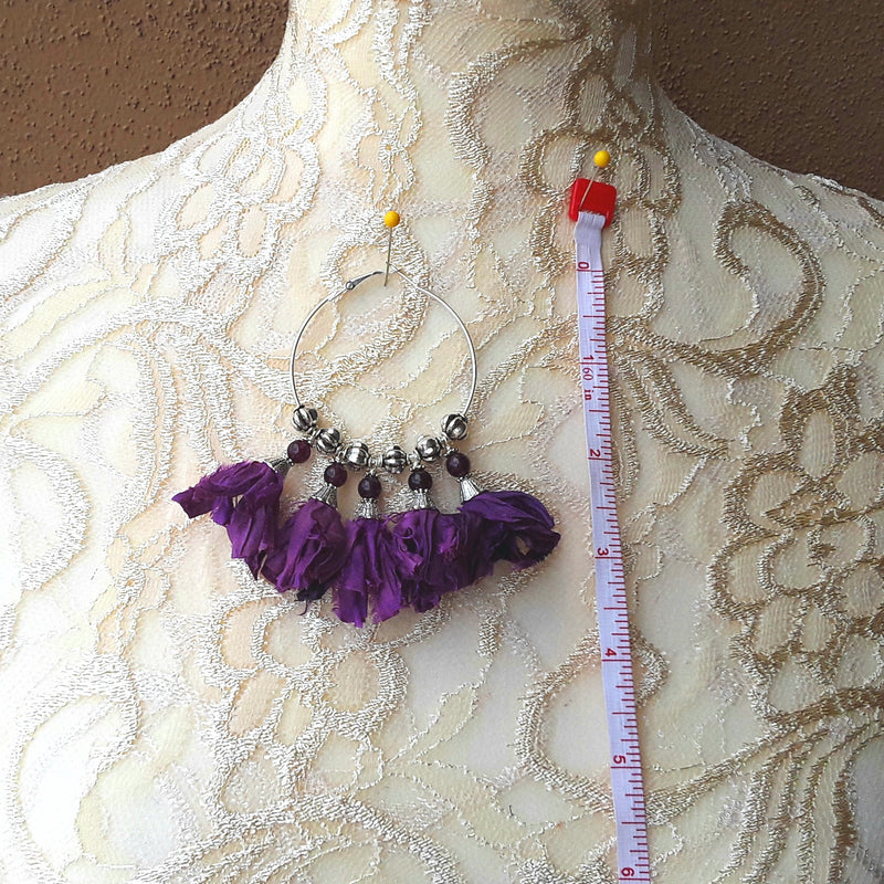 Violet Sari Silk Ribbon Huge Hoop Silver Plated Statement Earrings - Boho Fabric Earrings