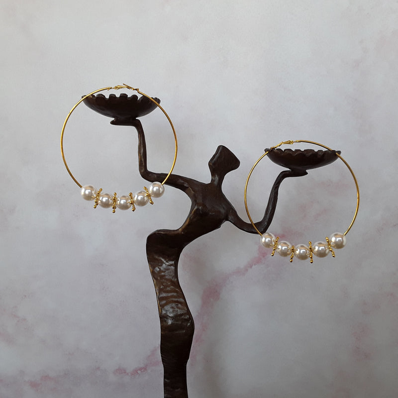 Huge Pearl Hoop 18K Gold Plated Statement Earrings, 2 Styles - Bridesmaid Gift