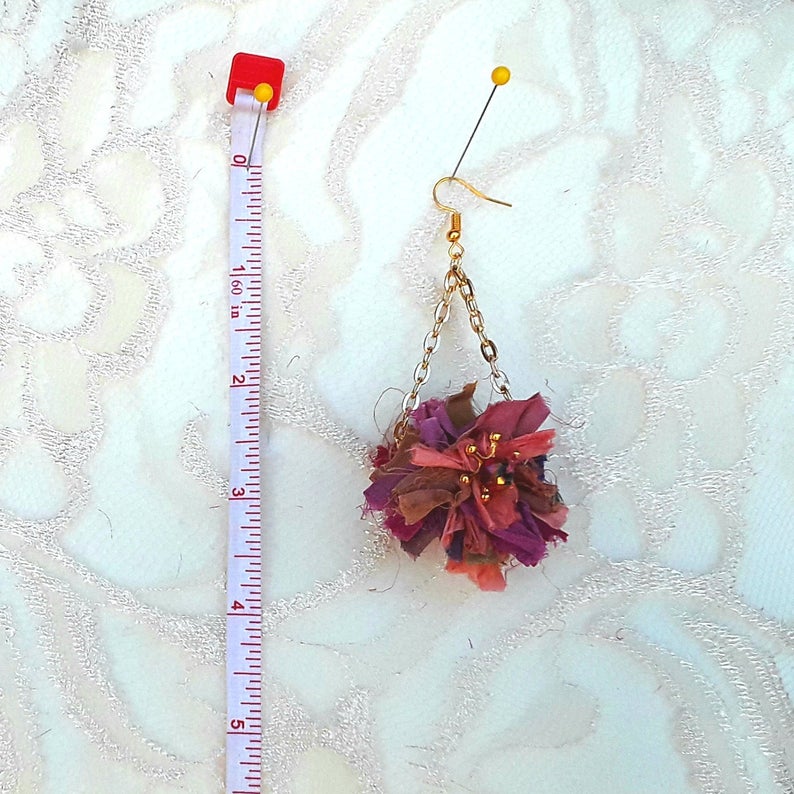 Colorful Sari Silk Ribbon Dangle Flower Statement Earrings - Boho Fabric Earrings